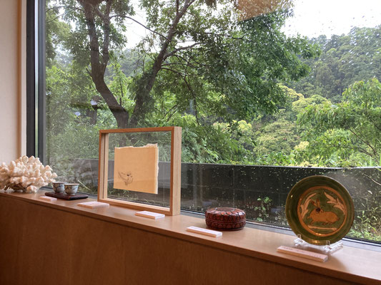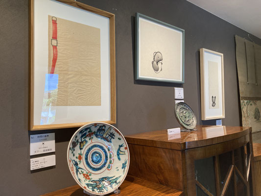 ギャラリーの古美術コレクションと組み合わせて展示。